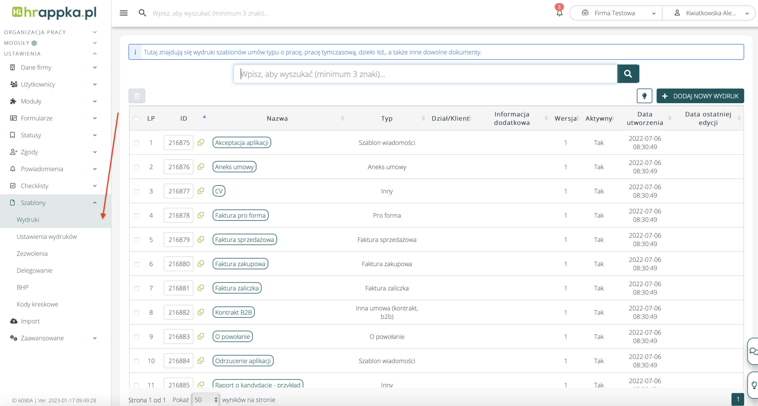 Klikając w nazwę możemy przejść do edycji wydruku paska: