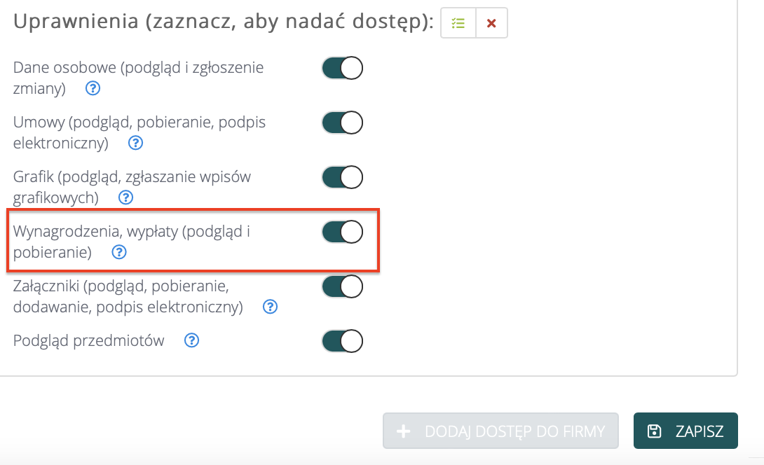 Pracownik, aby mieć możliwość pobrania pasków wynagrodzeń musi posiadać uprawnienie do podglądu swoich wynagrodzeń. Uprawnienie można nadać wchodząc w Ustawienia >  Użytkownicy > Użytkownicy, a  następnie wybrać pracownika i na dole okna zaznaczyć opcję “Wynagrodzenia, wypłaty (podgląd i pobieranie)”: