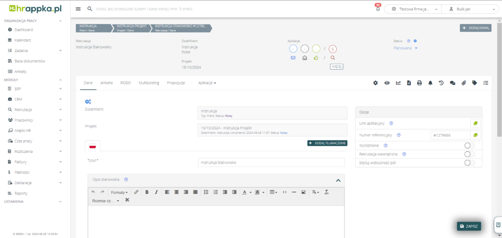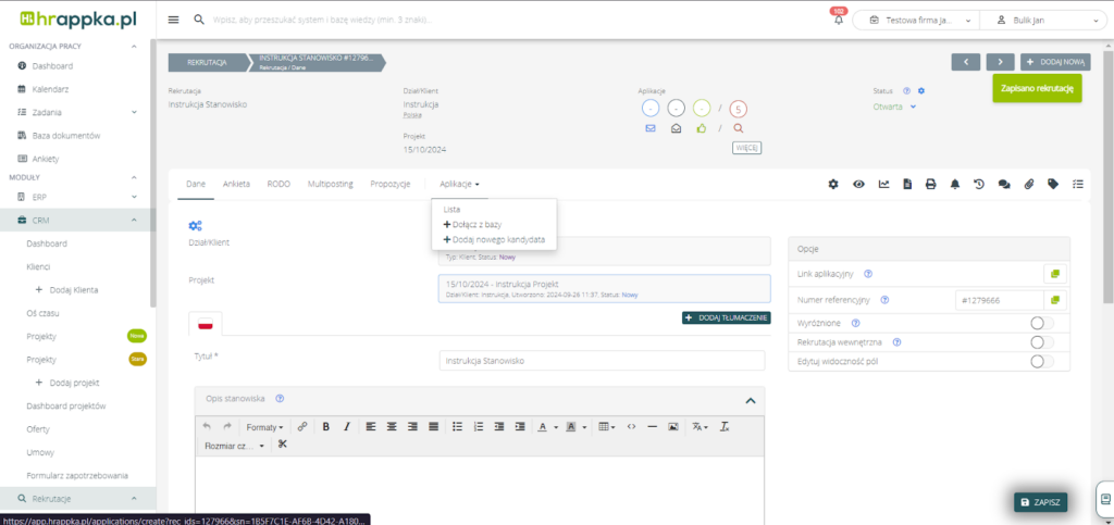 Więcej informacji na temat rekrutacji na stronie: https://pomoc.hrappka.pl/baza-wiedzy/dodawanie-rekrutacji/