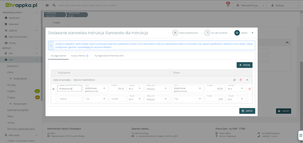 Krok 3.3 Określenie Stawek na stanowisku  #