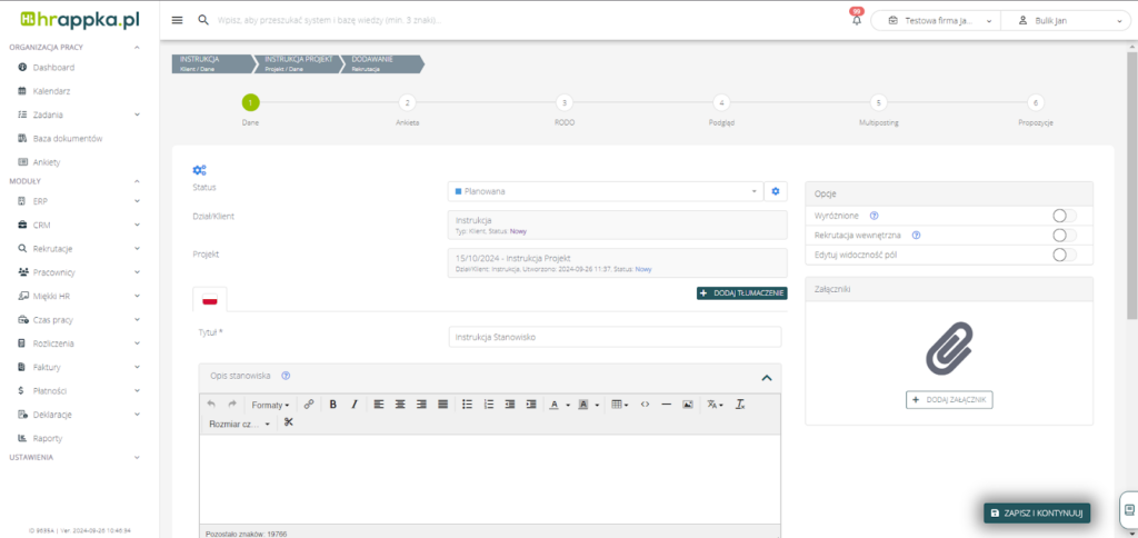 System przeniesie nas do formularza dodawania rekrutacji, który krok po kroku przechodzimy.