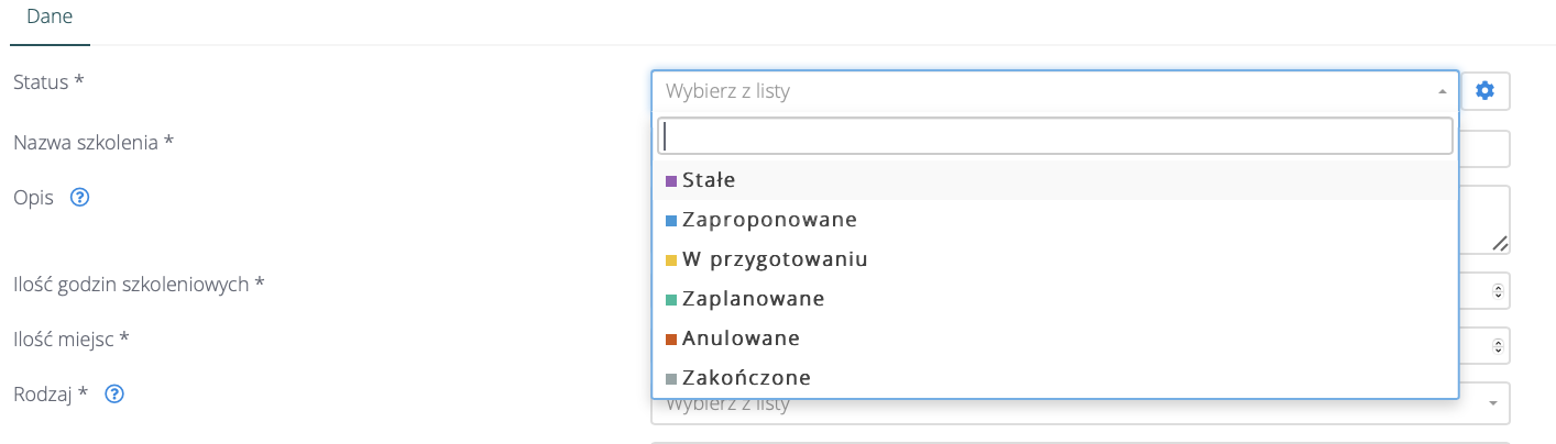 Statusy szkoleń #