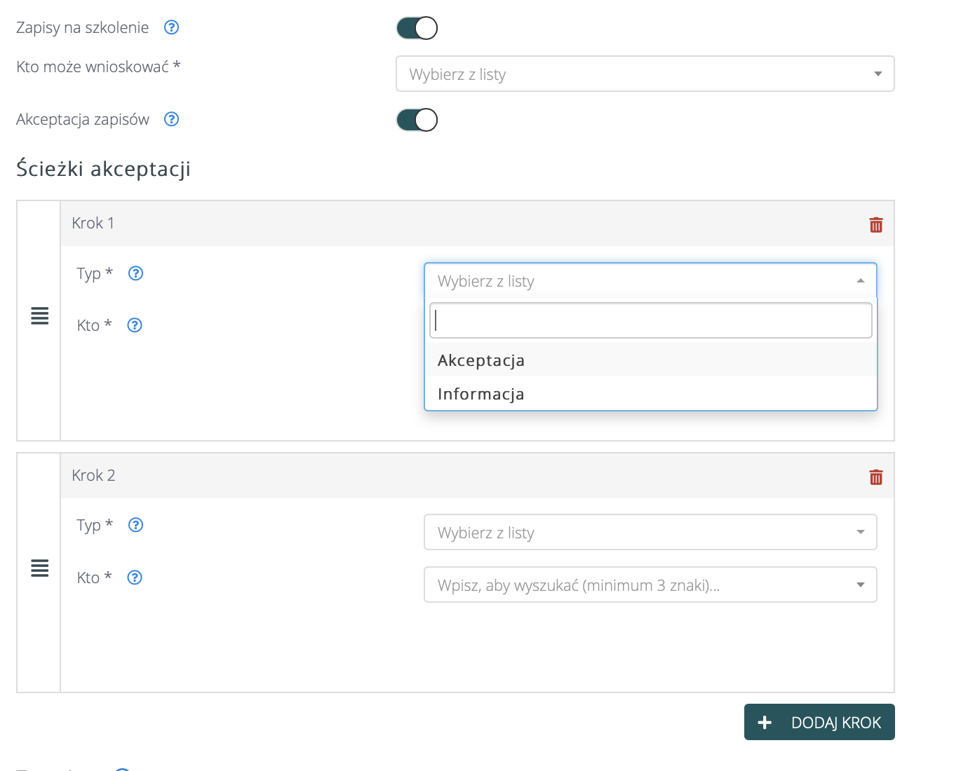 Ścieżki akceptacji zapisów na szkolenia #