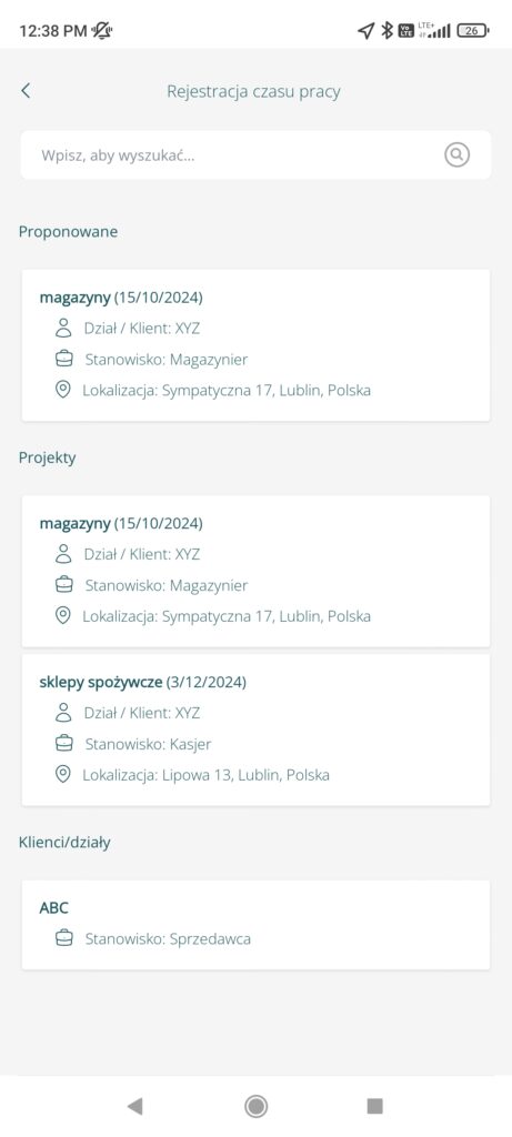 - Braku projektów do rejestrowania pracy – Skontaktuj się z Twoim przełożonym, aby upewnić się, że istnieją projekty / dział / Klient, na które możesz rejestrować czas pracy